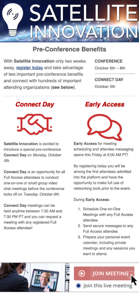 Satellite Innovation — Early Access & Connect Day — Benefits Abound…