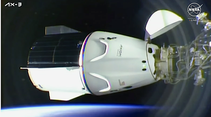 Aboard the spacecraft will be Ax-3 astronauts Michael López-Alegría and Walter Villadei , Alper Gezeravcı , and Marcus Wandt, who flew to the space station on Dragon when Falcon 9 launched the spacecraft from Launch Complex 39A (LC-39A) at Kennedy Space Center in Florida on Thursday, January 18 at 4:49 p.m. ET.