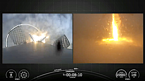 This was the 25th flight for the first stage booster supporting this mission, which previously launched NROL-87, NROL-85, SARah-1, SWOT, Transporter-8, Transporter-9, NROL-146, Bandwagon-2, NROL-153, NROL-192, and now 15 Starlink missions.