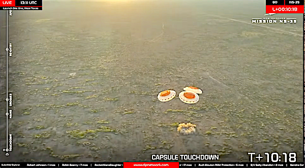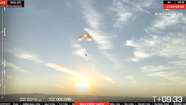 Blue Origin has completed their 35th New Shepard flight and 15th payload mission from Launch Site One in West Texas—this flight carried more than 40 payloads from students, NASA, research institutions, and commercial companies, bringing the total number of science payloads flown on New Shepard to more than 200 in number. Photos captured by Satnews.