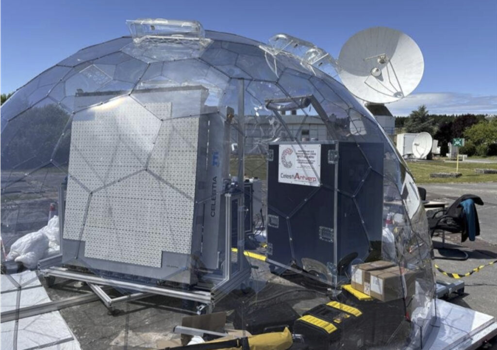 For the test, the modem developed by Celestia Antwerp during this project generated the signal. This signal was then amplified and steered by the panel of the phased array antenna.