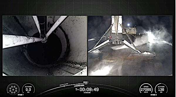 This was the fifth flight for the first stage booster supporting this mission, which previously launched Ax-4, Crew-11, NG-23, and now two Starlink missions.