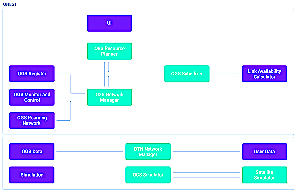 ONEST allows participants to integrate their OGSs and roaming networks, manage interfaces, and test interoperability. By combining link planning, satellite emulation, and network orchestration into a unified framework, the testbed supports the development and evaluation of secure, high-throughput space communication systems and provides an environment for testing and validation.